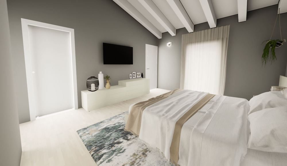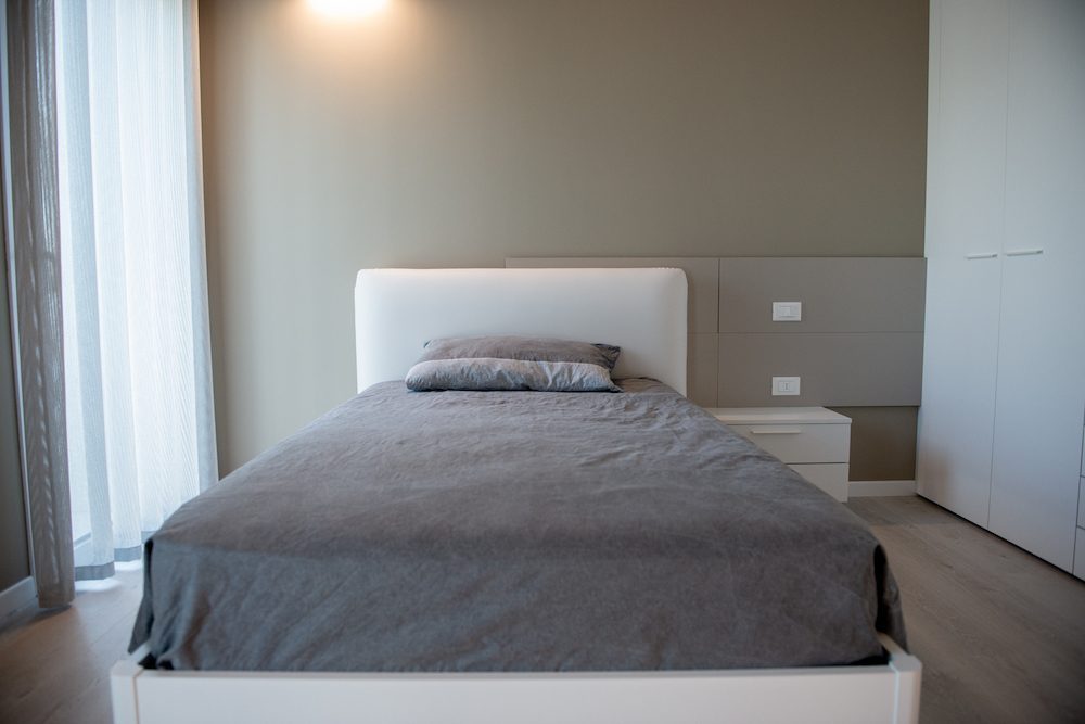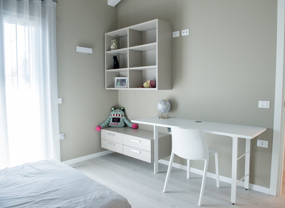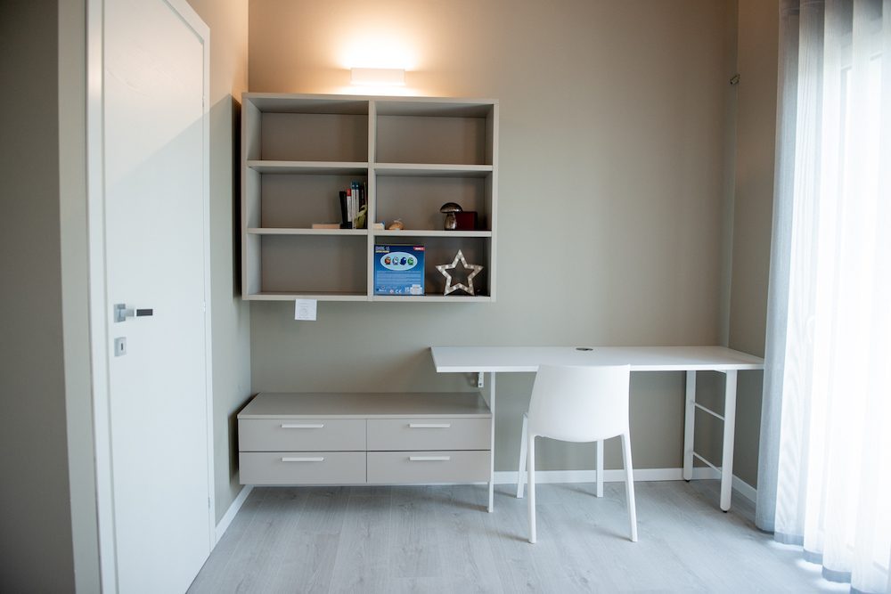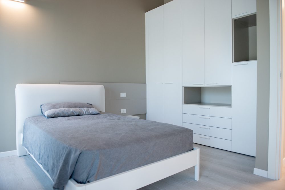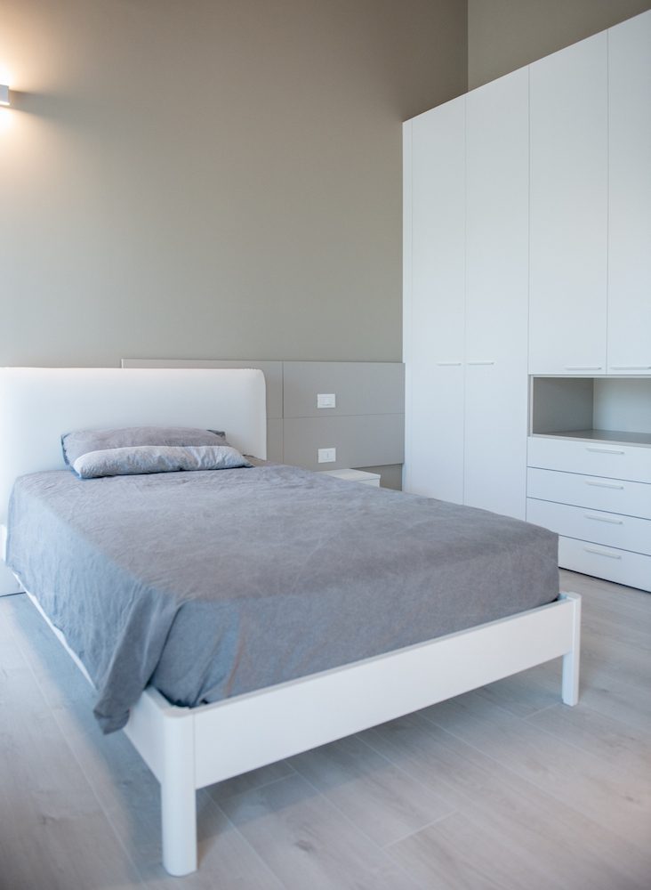La progettazione degli arredi della villa di San Bonifacio ha interessato anche le camere da letto dei due giovani di casa: realizzate per valorizzare al massimo lo spazio a disposizione e per creare accoglienti ambienti neutri, le camerette si preparano ad accompagnare la crescita di due bambini ormai pronti a diventare teenager.