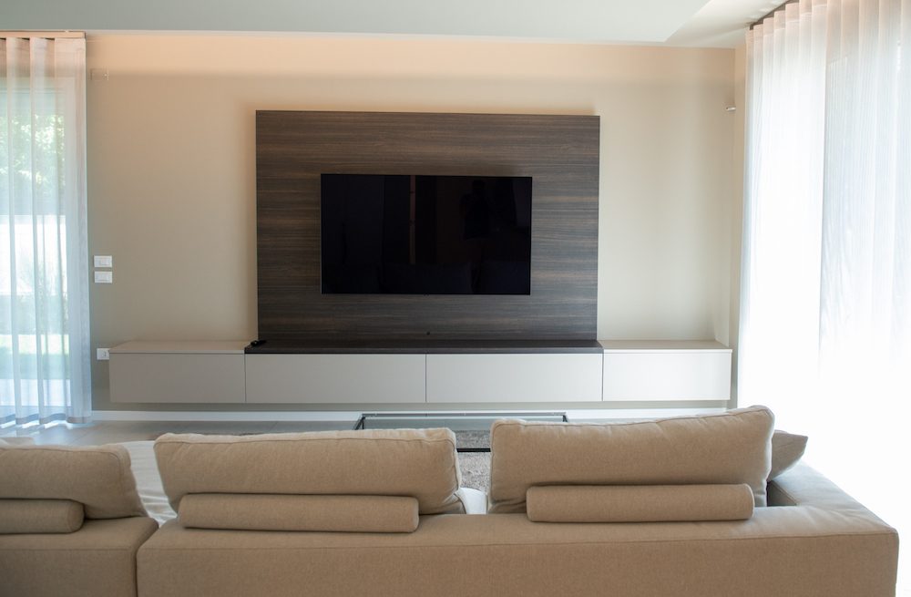 Le ampie dimensioni della zona giorno della casa di San Bonifacio erano, al contempo, un’opportunità e una sfida: per sfruttare al meglio lo spazio, sono state create due aree separate. Nella prima, il grande divano e il televisore sono protagonisti, mentre nella seconda è stato creato un accogliente angolo conversazione.