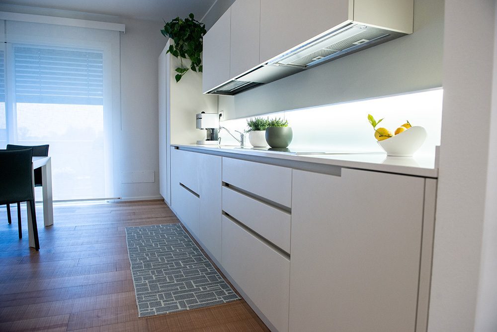 Una cucina separata dal living, oppure una zona giorno open space? La scelta non è necessaria, grazie a porte scorrevoli che consentono di aprire la cucina alla vista o di separare i due ambienti in un solo istante.