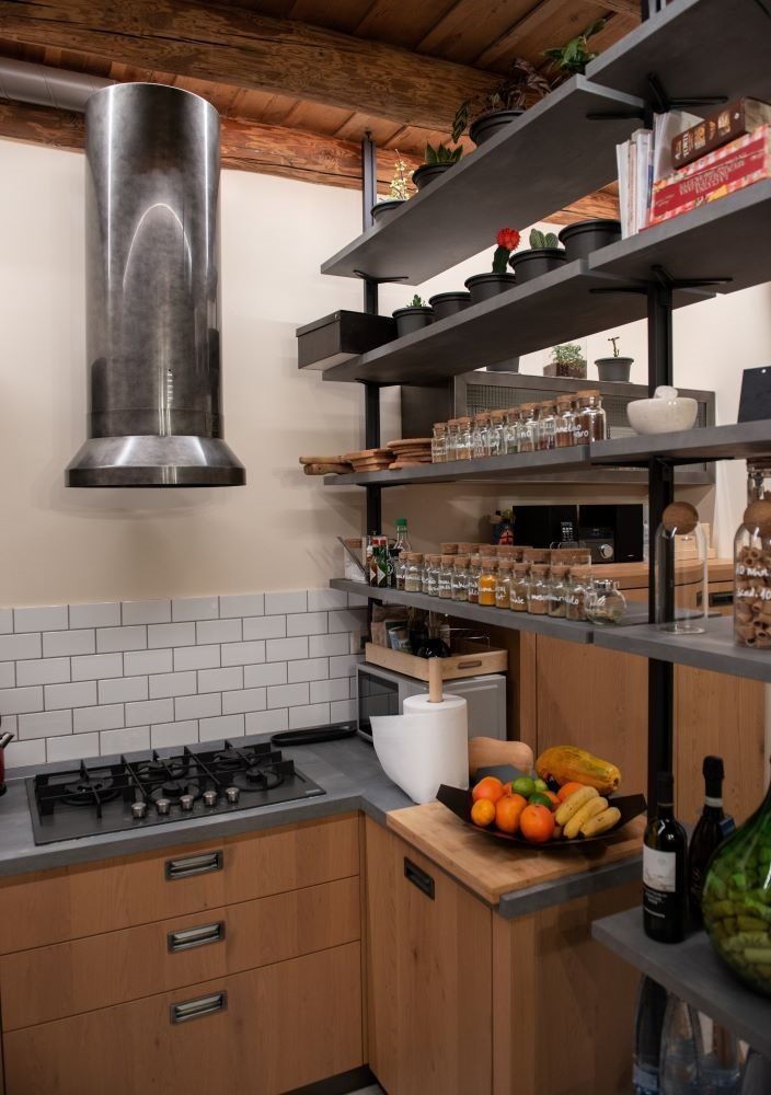 Usata come scaffalatura, riesce ad aggiungere tocchi di colore non scontati, grazie alle spezie e gli altri oggetti che sono stati posizionati.