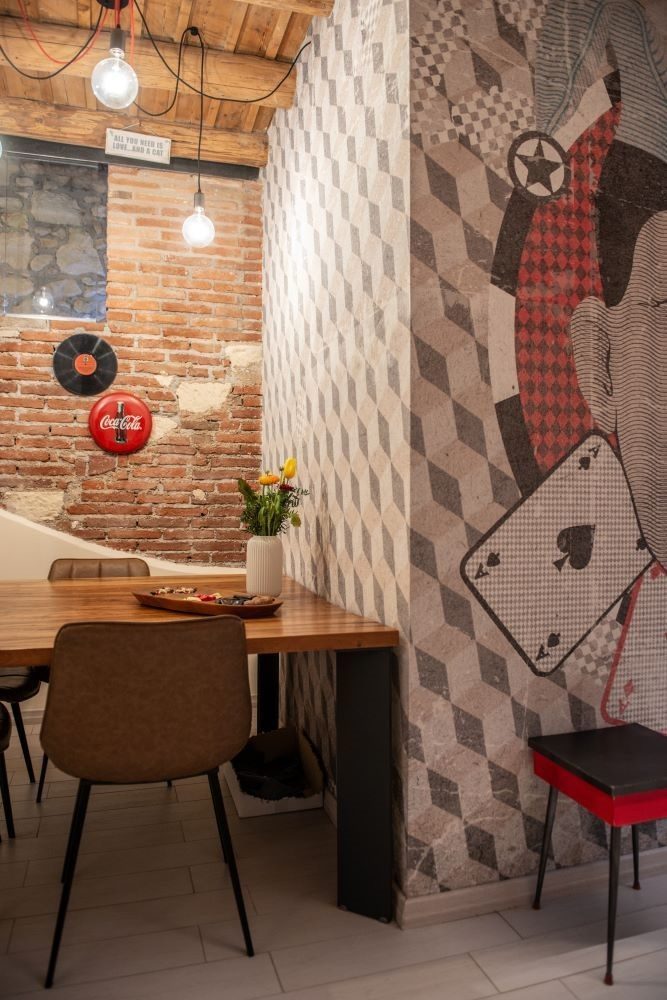Proprio la passione di Petra per i giochi da tavolo ha ispirato l’enorme Joker raffigurato sulla parete. Un elemento decorativo originale e colorato che dona vivacità alla stanza in modo del tutto personalizzato. Ogni angolo della casa parla riflette l’identità di chi la vive ogni giorno.