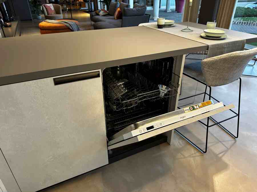 L’inclusione di elettrodomestici di alta qualità come il piano cottura Whirlpool con zone Flexy, il forno maxi da 75 cm e il frigocongelatore da 306 litri assicura prestazioni eccellenti. La lavastoviglie da 13 coperti e la cappa Falmec Air WALL completano l’offerta tecnologica, rendendo ogni operazione in cucina semplice ed efficiente.