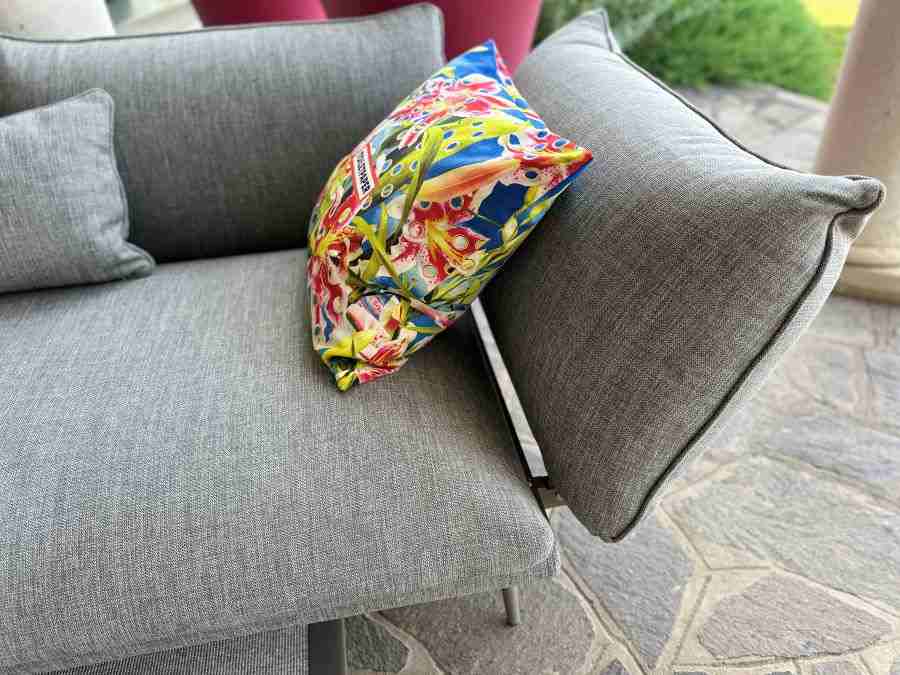 Un altro punto di forza del divano Piuma è il suo sistema reclinabile che consente di abbassare sia i braccioli che gli schienali. Questa caratteristica trasforma il divano in un comodo daybed, offrendo un comfort aumentato per momenti di relax all’aperto.
