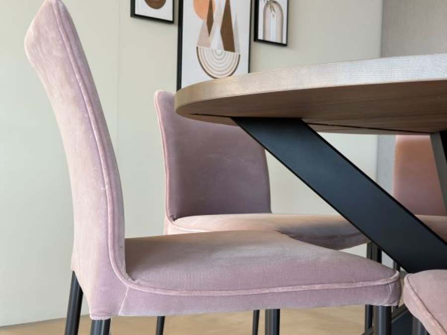 La sedia Nata di Bontempi è la scelta ideale per chi desidera unire design moderno, comfort elevato e materiali di alta qualità. La sua struttura in acciaio resistente garantisce solidità, mentre l’imbottitura completa offre una seduta confortevole. Il rivestimento in velluto Supreme color cipria, elegante e morbido al tatto, aggiunge un tocco di classe a qualsiasi ambiente, dalla sala da pranzo al soggiorno.