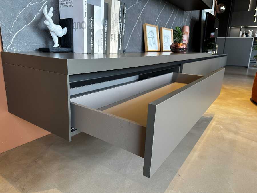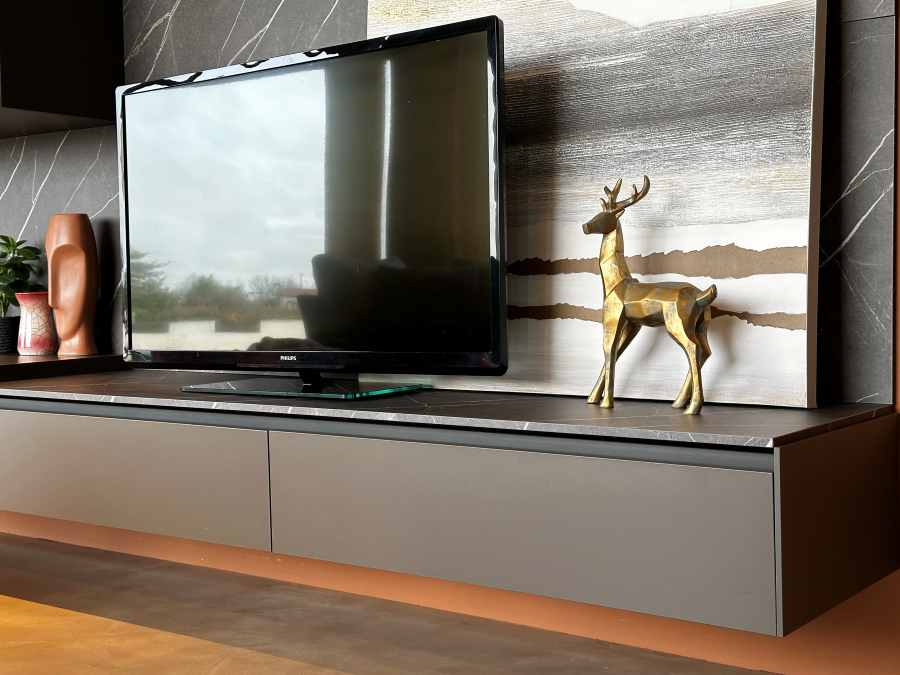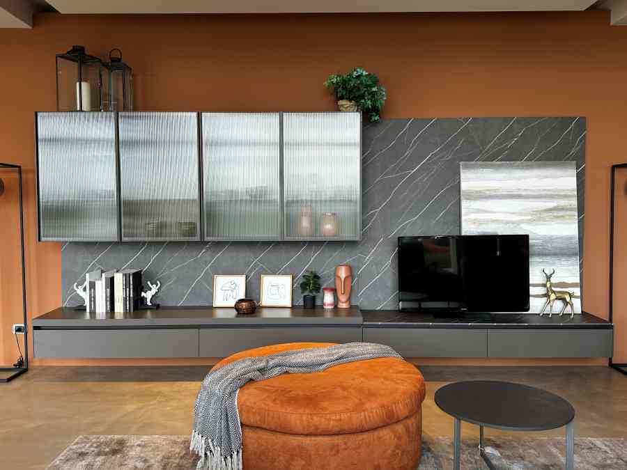 Il soggiorno Novamobili BOX 18 rappresenta l’essenza del design moderno, combinando eleganza e funzionalità in un’unica soluzione d’arredo. La sua struttura in laminato Quarzo seta offre una finitura raffinata e resistente, perfetta per chi cerca un tocco di classe senza rinunciare alla praticità. Le ante, anch’esse in Quarzo seta, si integrano armoniosamente con il resto della composizione, creando un effetto visivo di grande impatto.